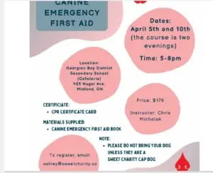 Sweet Charity is offering Canine First Aid and CPR TrainingAll proceeds will go directly to supporting our PSSD and CAP Programs Canine First Aid and